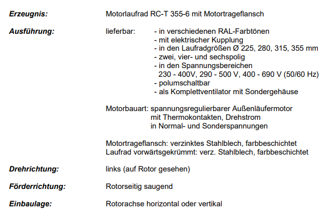 RC-T DKE 355-6離心風機,適用于通風散熱制冷,能源技術行業(yè)