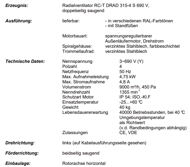 離心風(fēng)扇RC-T DRAD 315-4 S 690 V