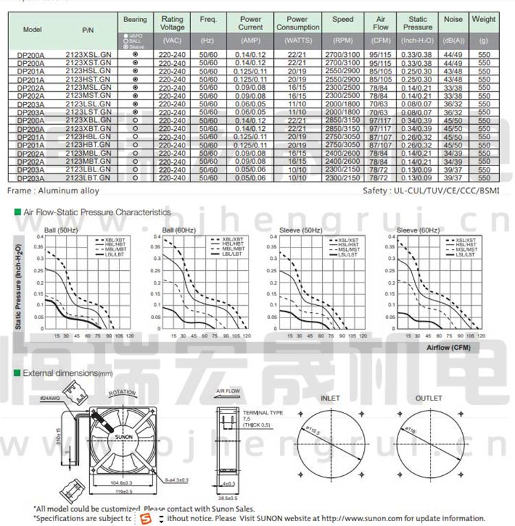 SUNON DP200A 2123XBT.GN交流風機參數(shù)