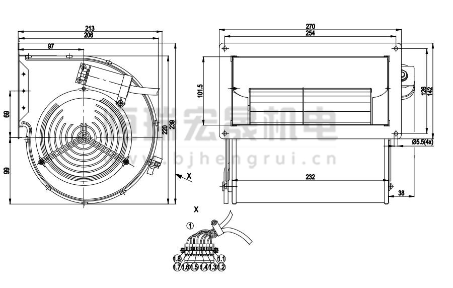 D2E146-AP47-B8 風(fēng)機(jī)為前向離心風(fēng)機(jī),帶前彎葉片的 ebm-papst 離心風(fēng)扇的突出特性包括其極低的噪聲水平和高功率密度。它們用于在狹小空間內(nèi)移動大空氣量的地方。根據(jù)空氣動力學(xué)和幾何要求,葉輪采用單進(jìn)氣或雙進(jìn)氣配置。為了獲得高效率,除了電壓控制的異步電機(jī)外,還特別使用高效的 GreenTech EC 電機(jī)。兩種驅(qū)動器類型都可用于整個電源范圍。