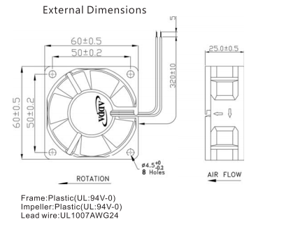 ADDA AD0605MB-A70GL 6025 5V 0.32A 機(jī)柜 打印機(jī) 儀器設(shè)備散熱