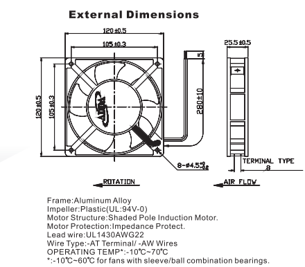 全新原裝ADDA AA1252MB-AW 12025 230VAC 機柜散熱風扇
