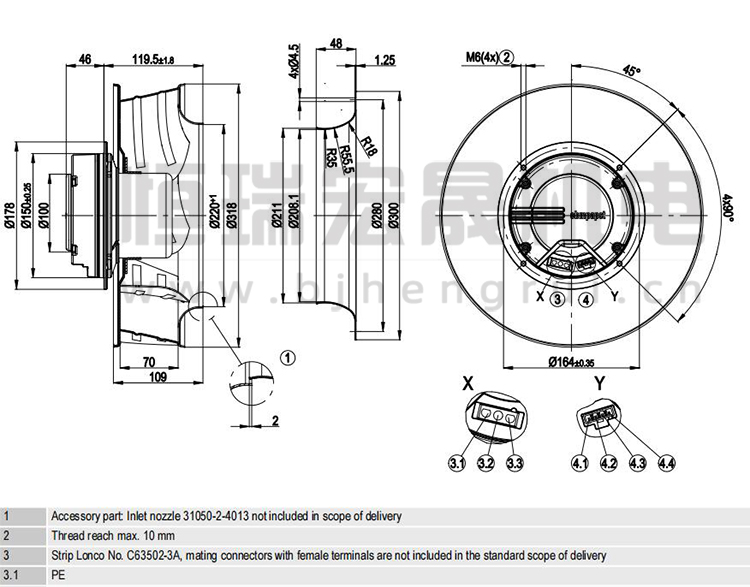 R3G310-AJ38-61 風(fēng)機(jī)為后向離心風(fēng)機(jī)。帶向后彎曲葉片的 ebm-papst 離心風(fēng)扇主要用于吸入。由于大部分壓力積聚發(fā)生在葉輪中,因此通常不需要滾動(dòng)殼體。后向離心風(fēng)扇具有非常好的液壓效率和低噪音水平,非常適合高壓。 除了節(jié)能之外,集成控制電子還可以實(shí)現(xiàn)控制、監(jiān)測(cè)和維護(hù)功能。