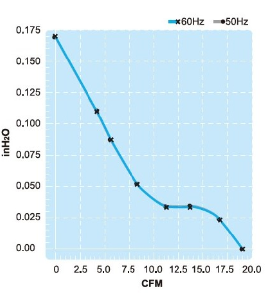 | Maximum Pressure | 0.0.17(115V) 0.18(230V) InchH2O | ||