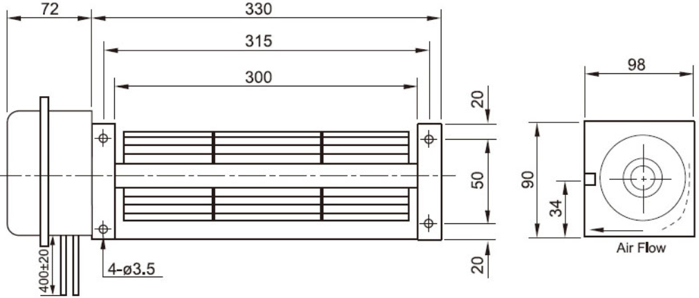橫流風(fēng)扇特殊的出風(fēng)面窄而長(zhǎng)的結(jié)構(gòu)設(shè)計(jì), 特別適合安裝在扁平式的設(shè)備上
