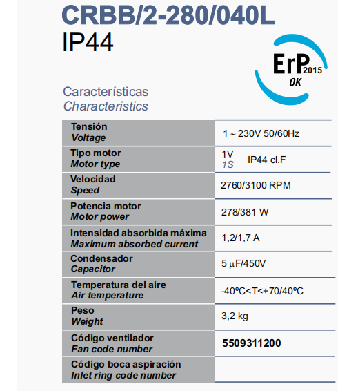 產(chǎn)品型號:CRBB/2-280/040L 5509311200