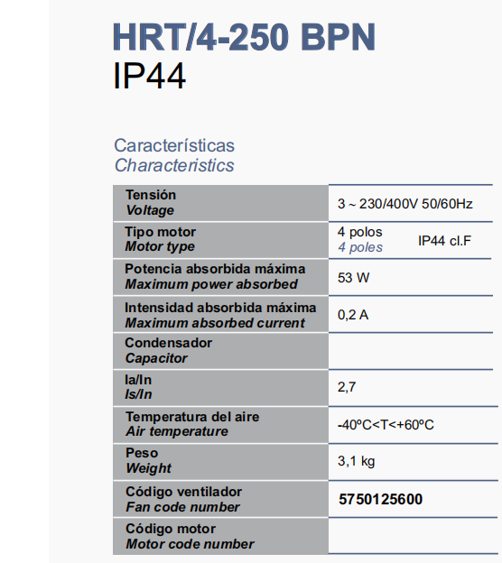 產(chǎn)品型號(hào): HRT/2-250 BPN 5750125600