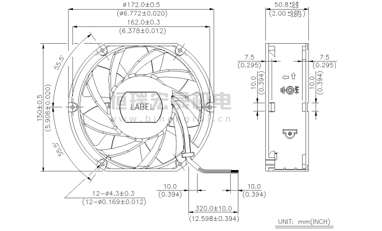 172*150*50.8mm 臺達(dá)Delta風(fēng)機(jī)結(jié)構(gòu)圖