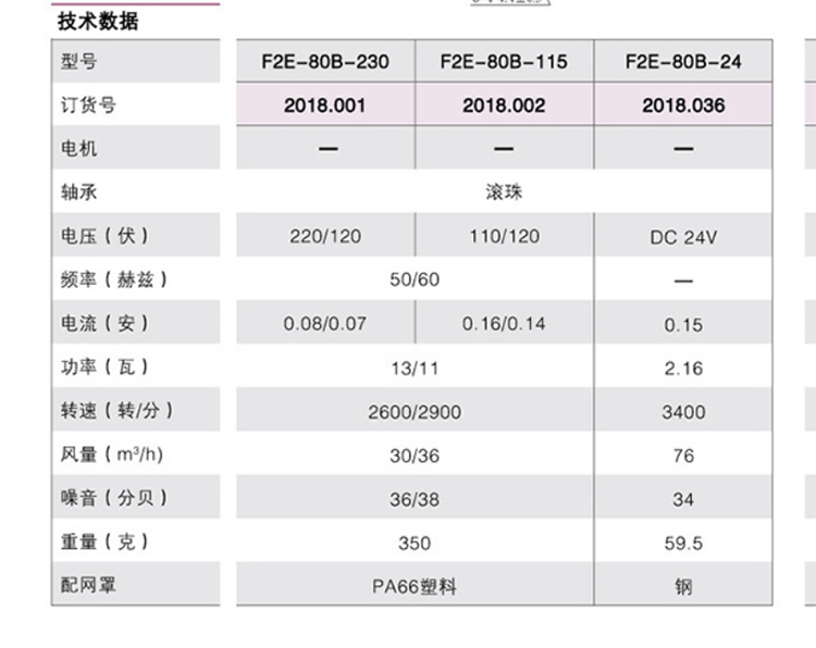 F2E-80B-230 雷普風(fēng)扇參數(shù)圖