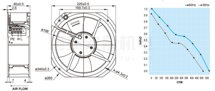 UF200BMA23H2C2A FULLTECH 福佑風機結(jié)構(gòu)風量圖:
